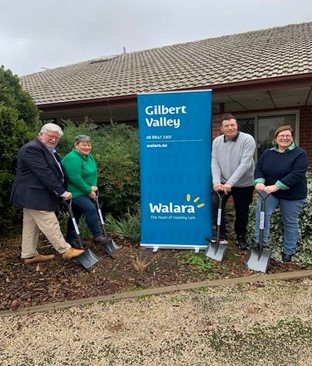 Malcolm, Matthew, Board Members Megan Lowe and Kate McCabe, Walara Gilbert Valley Director of Care Monica Ostigh, Hodgkinsons Architect Dario Salvatore and Juncken Builders Jason Billing participated in launching the redevelopment that afternoon.